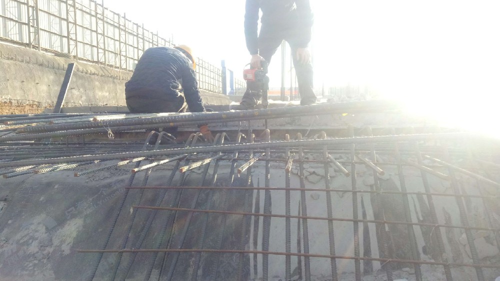 (6).楼板混凝土浇筑1个月左右,达到设计强度后(规范中为2个月,一般工期有限,不可能)再浇筑后浇筑混凝土。皮带处的梁底和侧板先支撑后浇筑。将对接接头处松散的混凝土颗粒去除并浇水润湿,采用强度高于地坪混凝土的微膨胀商品混凝土浇筑。加强养护,达到设计强度后拆除模板,施工完毕。